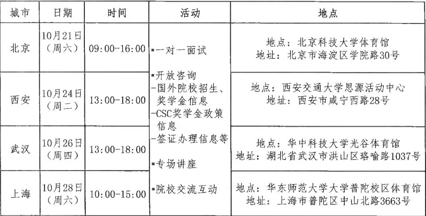 本届说明会将提供学生与国外院校/机构的教授和招生负责人面对面交流、一对一面试等机会,帮助学生了解该校(国)情况、具体留学申请要求、奖学金政策、签证办理等相关信息。国家留学基金委将就国家公派出国留学政策提供现场咨询答疑并举办专场讲座。