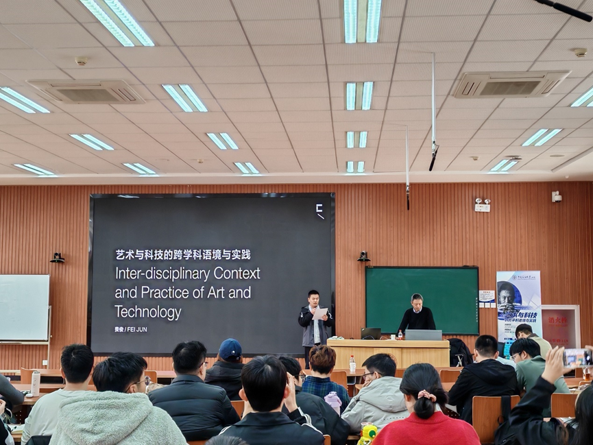 2025年3月13日,中央美术学院设计学院教授、博士生导师,某集体ART+TECH创始人、创意总监,中国美术家协会数字艺术艺委会秘书长费俊教授受邀前来我校,在东校区五教101为国家卓越工程师学院的同学们带来了一场题为《艺术与科技的跨学科语境与实践》的精彩讲座。本次讲座由研究生院专业学位管理办公室副主任王喜龙主持。